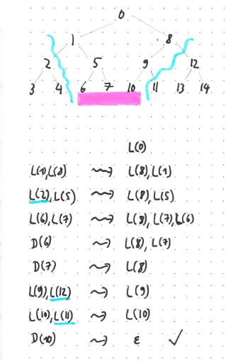In the second step, we read no data at all, because both labels are omitted. Hence, we push onto the reconstruction stack the information that both a left and a right label need to be reconstructed (and while the drawing lightly says which to which vertices these labels correspond, that information need not actually be stored on the stack). Same for the third step.